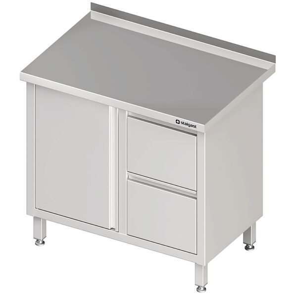 Arbeitsschrank mit Flügeltür, 900x600x850 mm, mit 2er Schubladenblock rechts, mit Aufkantung, verschweißt