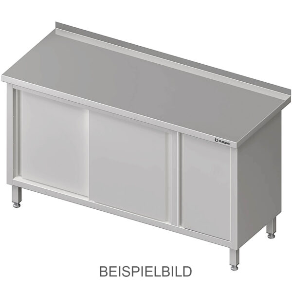 Arbeitsschrank mit Schiebetüren, 1400x600x850 mm, mit Flügeltürschrank links, mit Aufkantung, verschweißt