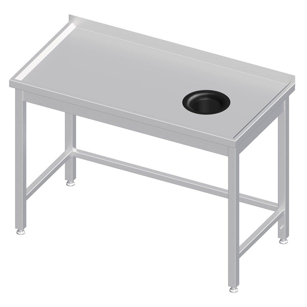Im hektischen Küchenalltag ist der Arbeitstisch mit Abfallloch eine praktikable Lösung für einen schnell aufgeräumten, sauberen Arbeitsplatz. Der Gummiring des Abfalllochs ist entnehmbar, damit er einfach hygienisch gereinigt werden kann. Damit nichts daneben landet, ist die Arbeitsfläche von einem Wulstrand umzogen und hat eine rückseitige Aufkantung von 4 cm.