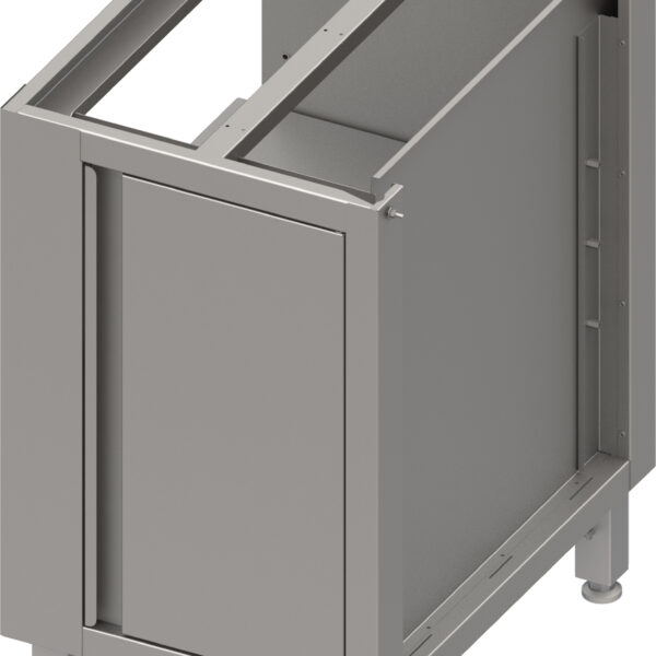 Der Unterschrank ist Bestandteil der Modulbauserie Boxversion 2.0 von Stalgast und Teil 2 einer zweiteiligen Lösung für die Eckmontage.