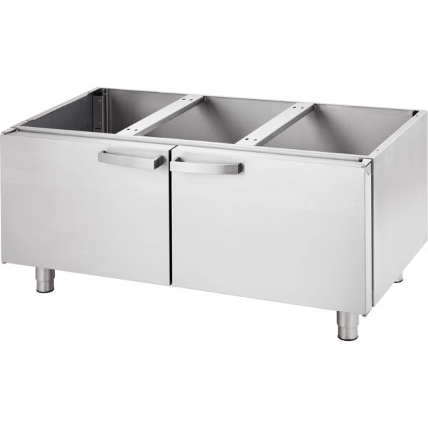 In Kombination mit diesem Unterbau aus hochwertigem Edelstahl können Sie ein 800er oder zwei Tischgeräte und/oder Neutralelemente mit einer Breite von 400 mm aus der Serie 700 ND von Stalgast auf die perfekte Arbeitshöhe bringen und in Ihre Kochstrecke integrieren oder frei aufstellen.Der verstärkte, präzise gearbeitete Unterbau wird von standfesten, höhenverstellbaren Füße sicher getragen. Ihre Kochgeräte und Neutralelemente können Sie mühelos passgenau in die Oberseite einsetzen.Die doppelwandigen Türen haben lassen sich komfortabel mittels eines breiten Griffs öffnen und schließen, dabei sichern Magnete die geschlossenen Türen.Ein Grundboden und der in vier Höhen verstellbare, durchgängige Regalboden schenken Ihnen zusätzlichen Stauraum.Für Ihre Planungsfreiheit erhalten Sie diesen Unterbau ebenfalls in 400 mm oder 1200 mm Breite für bis zu drei Geräte sowie mit offener Front.Schaffen Sie für sich und Ihre Mitarbeiter einen auf Ihre Bedürfnisse abgestimmten, organisierten Arbeitsplatz, der Ihre professionelle Kochkunst unterstützt, Ihre Zusammenarbeit stärkt und an dem Sie sich wohlfühlen – Ihre Gäste werden es merken!