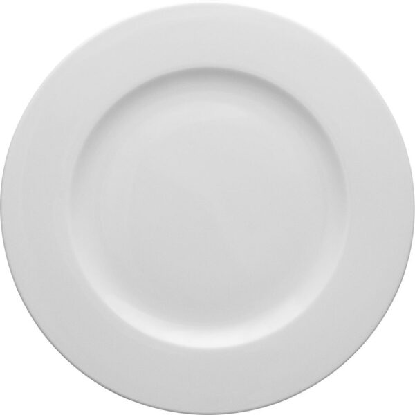 Dieser große Teller ist Bestandteil des Services „Versailles“ – ein schlicht elegantes, umfangreiches Hotelporzellan, dass jedes Tischsetting und Dekoration zurückhaltend unterstreicht.Der reinweiße Teller hat eine leicht ansteigende, glatte Fahne und ist prädestiniert das Servieren des Hauptganges, für Salate oder auch als Platzteller zu verwenden. Egal für welche Gelegenheit, mit diesem Service in Gastro-Qualität treffen Sie die richtige Wahl.Die Glasur ist abrieb- und kratzfest, der Rand ist verstärkt und in der Spülmaschine zu reinigen. Wegen der Unempfindlichkeit und der platzsparenden Lagerung kann das Service hervorragend beim Catering eingesetzt werden.