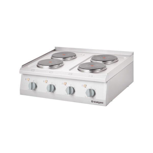 Kurze Aufheizzeit des Kochfeldes, unmittelbare Temperaturregulation, geringer Energieverbrauch, kaum Wärmeemission, schnelle Reinigung und niedrige Wartungskosten – die professionellen Induktionsherde von Stalgast vereinen viele unschlagbare Vorteile für Sie!Stalgast setzt bei der Induktion auf modernste Technik. Das pflegeleichte Kochfeld aus Glaskeramik beherbergt zwei Induktionsspulen mit 25 cm Durchmesser, die ein magnetisches Feld erzeugen. Dies nimmt der geeignete Topf auf und wandelt es in Wärme um.Sie können Ihr Kochgeschirr bis zu einer Größe von 32 cm beliebig auf dem Kochfeld platzieren und trotzdem sicher sein, dass Ihr Kochgut mit konstanter Wärmezufuhr erhitzt wird.Die von Ihnen gewählte Temperatur lässt sich schnell und direkt regulieren; Selbst niedrige Temperaturen sind möglich und erlauben Ihnen z.B. das Schmelzen von Schokolade ohne Wasserbad. Dabei erhitzt sich nur der Topf, das umgebende Kochfeld bleibt kalt und keine Energie geht verloren. Der Clou: falls mal etwas überkocht, kann nichts einbrennen und die kratzfeste Oberfläche lässt sich mühelos reinigen.Das Kochfeld verfügt über eine Betriebs- und Restwärmeanzeige sowie eine digitale Anzeige der Temperaturstufe. Die Übergänge vom Kochfeld zum Rand sind fließend und erleichtern das Reinigen.Die Blende sowie die Bedienleiste mit den ergonomischen Knebeln sind leicht schräggestellt und lasergraviert für eine einfache, intuitive Bedienung und eine dauerhaft gute Lesbarkeit.Unter dem Kochfeld ist ein großes Fach zum Verstauen von Küchenutensilien oder Vorräten. Die Tür mit Magnetverschluss und dem gekanteten, stylishen Griff sorgt für optische Ordnung und Schutz vor Verschmutzungen im Stauraum.
