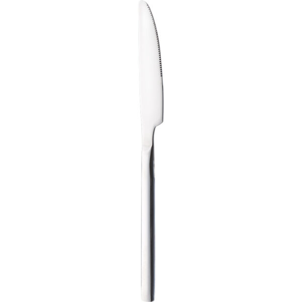Liebhaber gradlinigen Designs sollten sich für die Besteckserie Turia entscheiden. Die streng linearen Griffe im Stil des Art Déco sind sehr modern und exklusiv. Auf einem zurückhaltend, geschmackvoll gedeckten Tisch wird dieses lange Besteck für Ihren Gast zu einem ästhetischen Blickfang.Durch die abgerundeten Seiten liegt das Besteck ausgezeichnet in der Hand und begleitet Ihren Gast durch die schmackhafte Speisefolge. Dieser Menülöffel mit seiner runderen Laffe kommt sowohl bei Suppen als auch bei Pasta, Risotto oder Desserts wunderbar zum Einsatz.Zusammen mit den weiteren Besteckteilen der Serie Turia erwerben Sie ein attraktives, pflegeleichtes Set für Ihre Gastronomie.