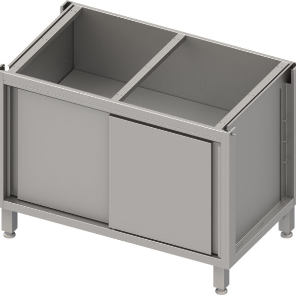 Der Unterschrank mit den leicht gleitenden Schiebetüren ist Bestandteil der Modulbauserie Boxversion 2.0 von Stalgast.