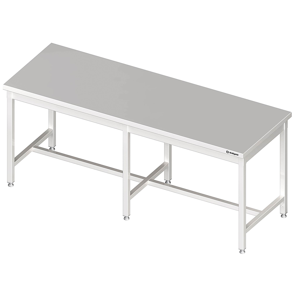 Der in der EU-produzierte Zentralarbeitstisch von Stalgast ist aus hochwertigem Edelstahl gefertigt, fest verschweißt und mit einer mittigen Verstrebung ausgestattet, damit Sie sicher und bequem von zwei Seiten arbeiten können.